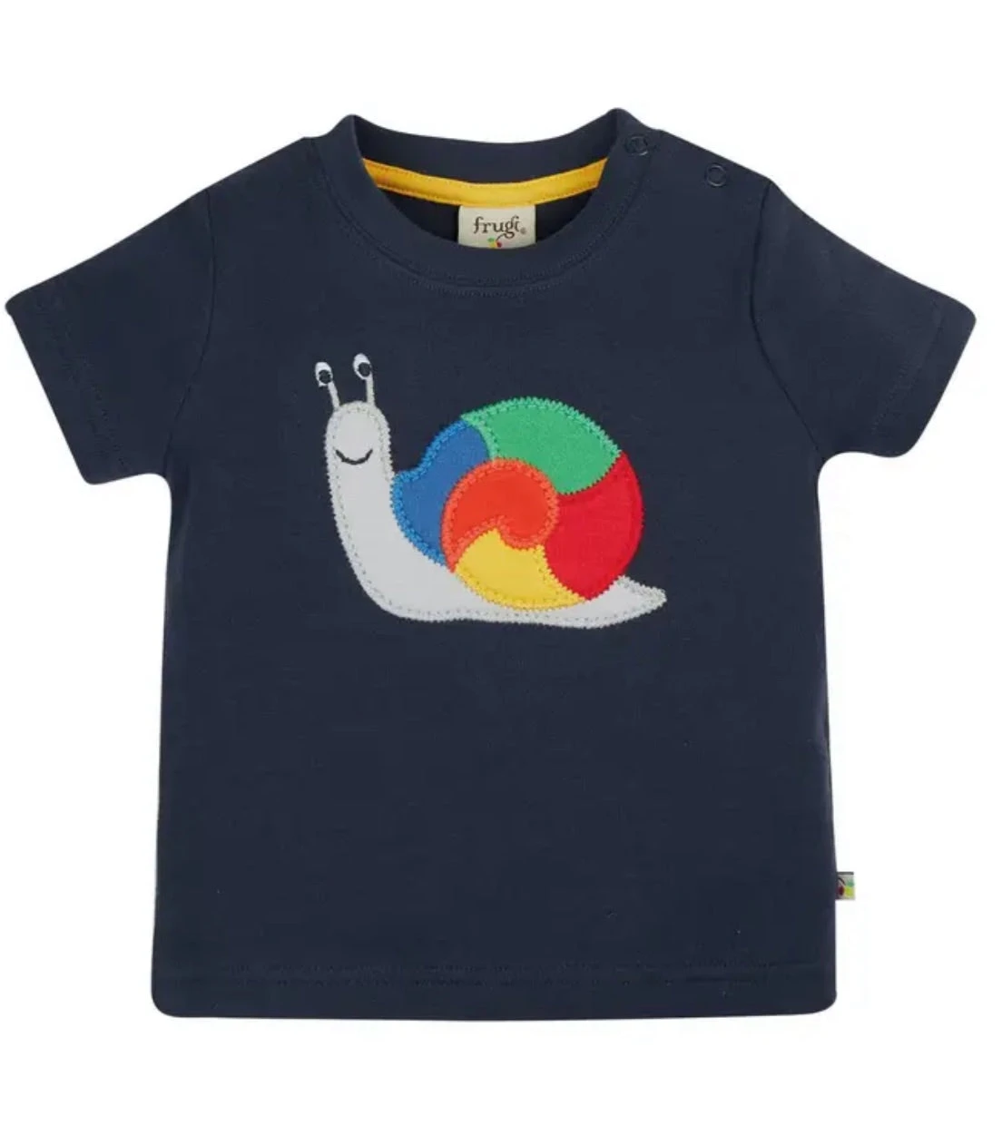 Ready for sunny summer adventures in the garden or at the park, this short-sleeved Little Creature Appliquĩ Top makes the perfect companion! With a colourful Rainbow Snail character on the front, this organic cotton baby and toddler top is super-duper soft and breathable, and the poppers on the shoulder of sizes up to 4 years make for fuss-free dressing too
