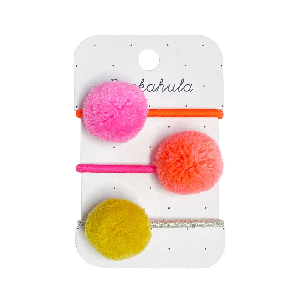 Perk up your hair with super fun pom poms! This set of three ponies are easy to wear one at a time or all together. The perfect way to add some colour to even the dullest day!