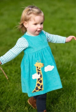 Frugi LILY CAMPER BLUE/GIRAFFE CORD DRESS
