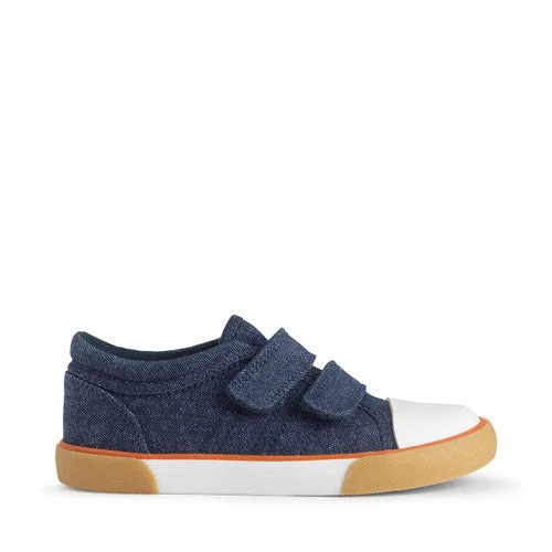 Little feet will love taking on new adventures in our lightweight yet durable Sandcastle denim canvas shoes. Down at the beach, climbing trees or sightseeing, these shoes have a flexible sole, an engineered tread design for improved grip, and enhanced toe protection for worry-free summer holidays. Vegan friendly, and made from breathable canvas, shoes are washable at 30-degrees.
